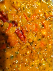 Heat a tablespoon of oil in pan and add mustard seeds. When mustard seeds start to pop add urad dhal, cumin seeds, and whole red chili. Once urad dhal turns golden brown and cumin seeds start to sizzle add chopped onion. Saute onions till golden brown then add garlic and ginger and cook for additional 2 minutes then add chopped tomatoes and all spices. Cook for about 10 minutes on medium low heat. Add little water if needed so spices don't burn. Add salt. Now add salmon and about 1/2 cup of water and simmer for about 10 minutes. Garnish with chopped cilantro.